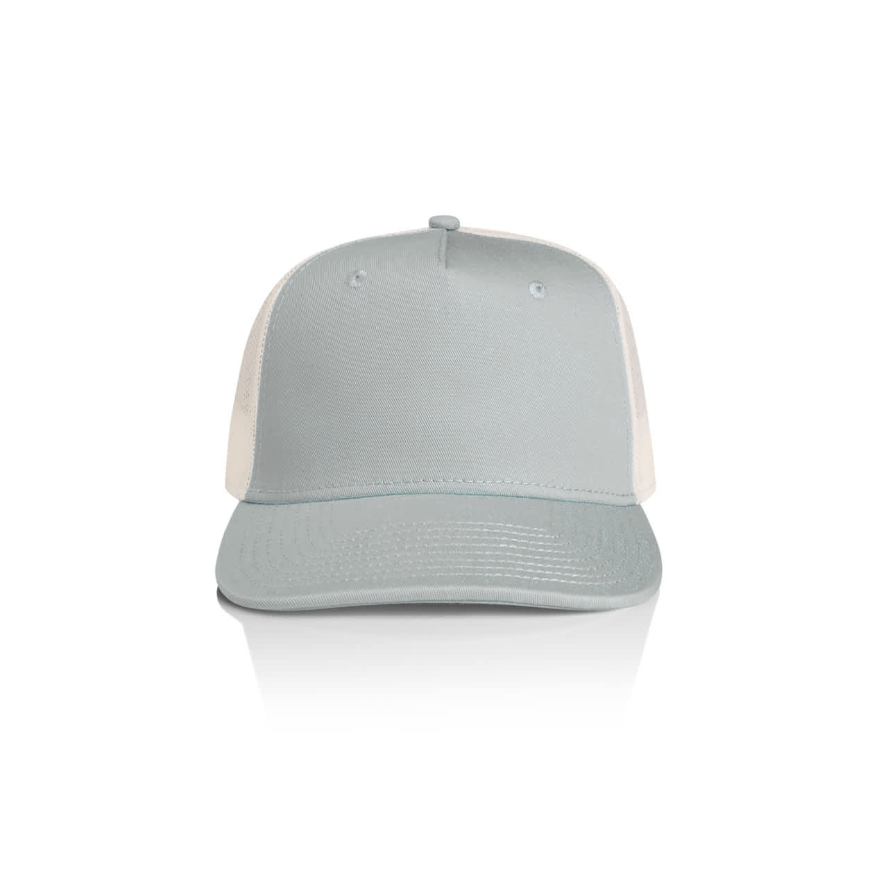 Discover the AS Colour Stock Contrast Trucker Cap: A high-profile snapback with a flat peak, crafted from mid-weight 100% cotton front and peak, complemented by a breathable 100% polyester mesh back in a contrasting color. Includes a plastic snapback closure, tonal under-peak lining, and tear-out AS Colour label.